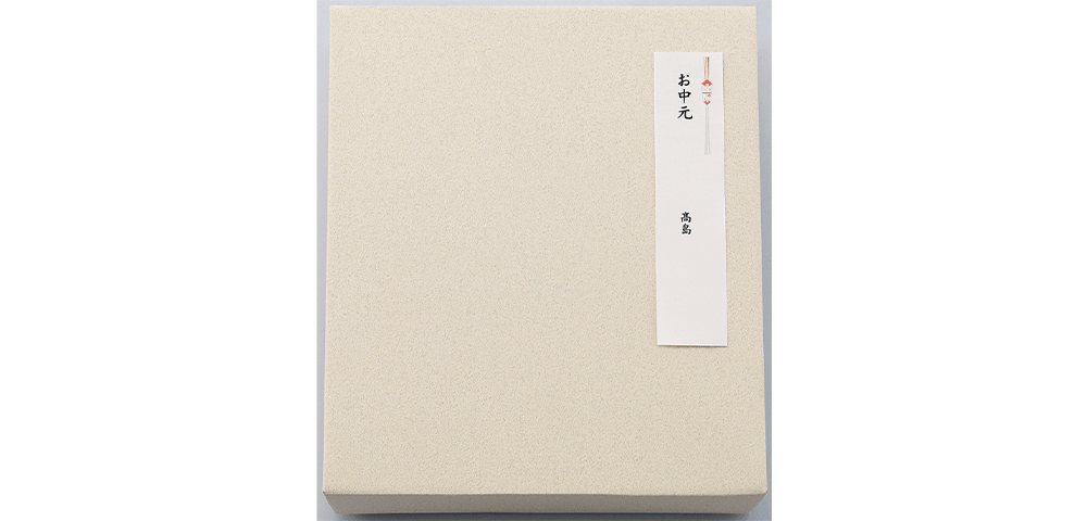 正式な場合には、奉書に水引、熨斗(のし)を用いますが、親しい間柄や、一般的な進物の場合には、その用途別に印刷した印刷掛紙を使用します。これは、品物をむき出しにして贈るのは失礼なので、品物を覆う意味できれいな紙で包み、こよりで結んで贈った昔の形が形式化したものです。