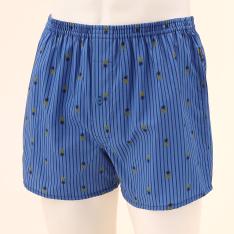 ヤシの木やサングラスを散りばめた遊び心ある総柄ボクサーパンツ。レギュラー丈、ウエストゴムは肌触りの良い裏パイル仕様、前開きタイプ。