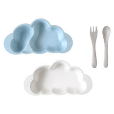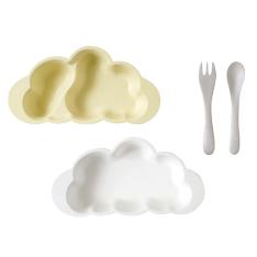 くもの形をしたかわいいデザインのお皿とフォーク、スプーンのセット。お皿は1枚皿と仕切り皿の2枚セットなので、月齢や時期に合わせて自由に使い分けができ、とても便利。離乳食卒業後には、おやつ皿として長く使えます。もくもくとした形はペースト状のごはんもキャッチしやすい形で、スプーンやフォークに慣れないおこさまにも扱いやすい設計になっています。電子レンジや食洗機にも使えプレゼントに喜ばれる一品です。