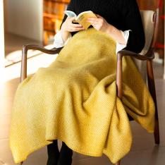 空気をたっぷり含ませふんわりと仕上げており、軽いのに温かいのが魅力のスロー。無造作にソファに掛けたりソファカバーにしたり、ベッドのデュベ(羽毛ふとん)の上にかけたり。肌寒いときには羽織ったりひざ掛けにと、手を伸ばせばそこにある、スローと過ごす心地よい暮らしをお楽しみください。輝くような光沢と滑らかな肌触りが魅力のゴットランドウール混紡のスローです。原産国:ラトビア