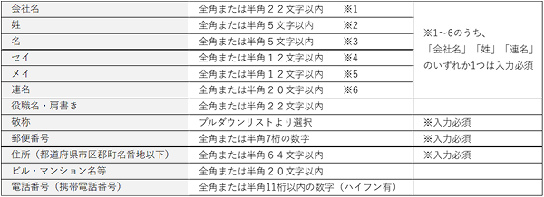 入力項目一覧と入力方法