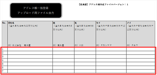2-1.ダウンロードしたフォーマットにお届け先情報を入力します。