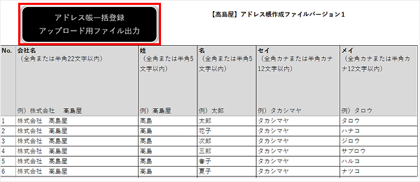1 . 一括登録用フォーマットを
