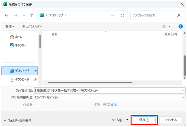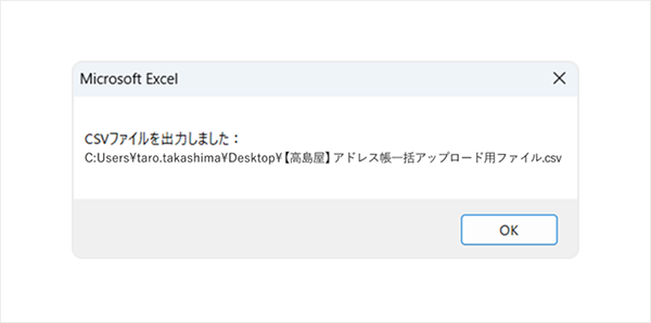 2-3.必要な項目がすべて正しく入力されている場合、アップロード用ファイル(csv形式)が出力されます。任意の場所に保存してください。