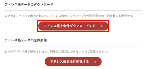 2-2.お届け先情報の入力が完了したら、「アドレス帳アップロード用ファイル出力」ボタンをクリックします。