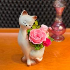 シンプルな花器にバラをメインに華やかにあしらって、大人可愛い優雅なプリザーブド&アーティフィシャルアレンジメント。飾る場所を華やかに彩る美しい佇まいは、特別な日の贈りものにもぴったりです。