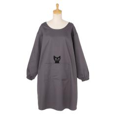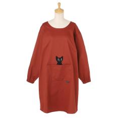 かわいらしいどんぐりのプリントとポケットから覗く黒猫がアクセントになるエプロン。シワになりにくく洗濯後のケアが容易なアイアコット加工を施した素材を使用しています。肩が落ちない人気のデザインです。