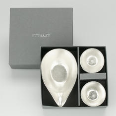 錫は古来より、「錫の器に入れた水は腐らない」、「お酒の雑味が抜けてまろやかになる」などといわれ、酒器や茶器などに用いられてきた金属。また、熱伝導率が高いため冷蔵庫に1~2分入れることで器自体が冷たくなり、冷酒がより一層おいしくお楽しみいただけます。
