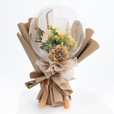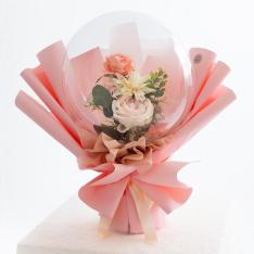クリアバルーンの中にアーティフィシャルフラワー(造花)が入っている人気のアレンジメントです。お誕生日や開店祝いなど幅広いシーンでのギフトとしてもおすすめです。フラワーのカラーは5色をご用意、バルーンメッセージも4種類よりお選びいただけます。※こちらの商品は「ギフト包装」をお選びいただいた場合も配送箱に直接配送伝票を貼付してお送りいたします。商品は不織布に包んで配送箱にお入れします。※画像の装飾品は商品には含まれません。