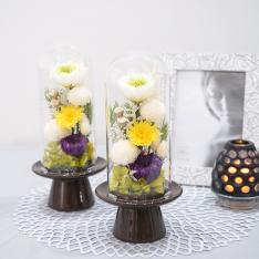プリザーブドフラワーで作られた仏花の2点セットです。お手入れも簡単に扱いやすく、和室にも洋室にも馴染みやすいデザインとなっています。