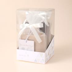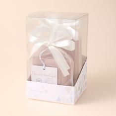 髪をまとめやすいヘア用タオルと、ふんわりお肌を包み込むお顔用タオルをセットにしました。肌に直接触れるものだから、繊維の先までやわらかく、ちくちくしにくい肌触りの綿を使用しました。ヘア用タオルは巻きやすいよう長さ約100cmと長め、また、両端のパイルは短めに、髪を包む中央のパイルは水分を吸収しやすいように長めにおられております。お顔用タオルは一般的なタオルよりも撚りを少なくし(自社製品比 ※cococi beauty製品)、ふんわりと柔らかな風合いに仕上げました。オーガンジー素材のギフトポーチ入りなので、自分へのご褒美や贈りもの用としてもおすすめです。