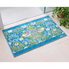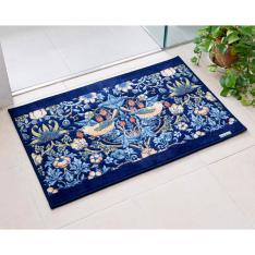 時代を超えて愛されるウィリアムモリスの代表作の一つで、モリスの別荘である「ケルムスコット・マナー」でいちごをついばむツグミを見て描いたデザインです。コンテンポラリーな空間にもマッチする、高級感あふれる重厚なカラーが特徴です。すべり止め加工つきで、お洗濯も可能です。