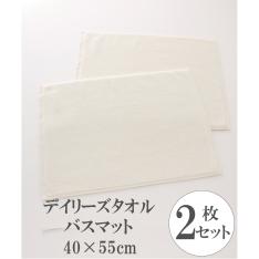 デイリーズタオルにバスマットが仲間入り。触り心地の良い綿100%のタオル地と、しっかりした丈夫な作りのバスマットは、裏表どちらでもお使いいただけます。洗い替えに便利な2枚セット。