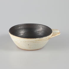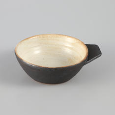 石川県能登島の工房「独歩炎」は陶芸作家藤井博文氏が主宰する窯です。うつわだけでなく様々な魅力的なデザインの土鍋も製作していますが、こちらは土鍋とあわせて使いたい、使い勝手の良い耳付きのとんすいです。底が平たく置いた時に安定感が有ります。木製のレンゲ等とあわせて手仕事の温かみを感じながら使いたい一品です。黒内白と、白内黒の2種類をご紹介いたします。