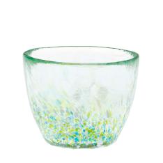 ガラスの厚みによる色の濃淡が美しい「ほのあかり」シリーズ。実はこのシリーズ、不要になった自動車の窓ガラスをリサイクルして作られています。中でも後部座席のスモークガラスに着目。そのガラスを70%配合することで味わい深いグラデーションを実現しました。型吹きした熱いガラスを水で急激に冷やすことで表面にヒビを入れ、焼き戻すといった職人の 熟練の技が、美しい表情を作ります。 飲み物や氷が動くたびに陰影がきらきらと変化し、食卓を素敵に演出します。 上質な時間を楽しむ方への贈りものとしても。