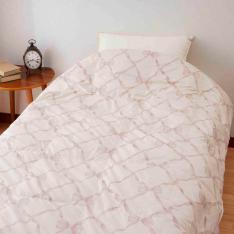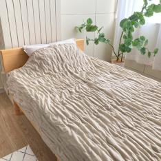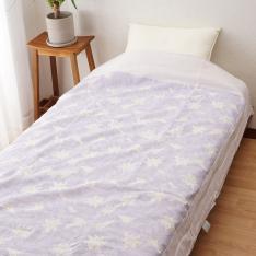 <kinofu>麻肌掛ふとんは、近江地方の豊かな水に育まれた「近江ちぢみ」を使用した麻ふとんです。絣染め、しごき捺染、ほぐし柔軟加工、竿干し縮み加工などによって、素材を生かした自然で優しい風合いに仕上げました。
