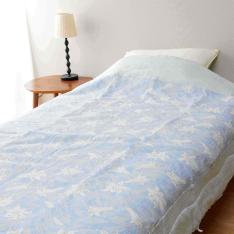 近江ちぢみの麻100%生地に麻100%の詰めもので仕上げました。麻特有の清涼感、シャリ感で肌触りも気持ちよく、暑い日本の夏を快適に過ごせるアイテムです。冷房対策としてもおススメの肌ふとんです。