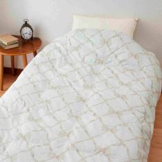 上面にはお腹の冷え防止と肩口にフィット感をもたらす特殊X構造キルトを採用したツインキルト羽毛掛ふとんです。上下を2層に区切ることで熱がもれにくく保温力が高まります。
