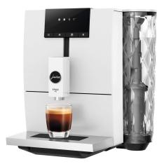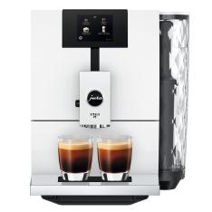JURAで最も小さいENA 8は、プロフェッショナル・アロマ・グラインダーやファインフォーム・テクノロジーなどのハイエンドテクノロジーを搭載し、上質なコーヒーを簡単に淹れることができます。すっきりとしたラインと洗練されたスタイリッシュなアクセントで、コンパクトながらエレガントなデザインが特徴です。プロフェッショナル・アロマ・グラインダーは静音性が向上。挽き目が安定し、香り高いコーヒーを抽出します。2カップ機能はコーヒーの2杯同時抽出が可能。ワンタッチアメリカーノはエスプレッソにお湯を加えてつくるアメリカ―ノをワンタッチで抽出。滑らかでコーヒーの風味もしっかり感じる味わいが特徴です。ファインフォーム・テクノロジーはミルクを使ったメニューのために、ソフトできめ細かいミルクフォームでフラットホワイトやカプチーノ等を抽出します。使いやすく、わかりやすい2.8インチタッチスクリーンカラーディスプレーは直感的な操作で、15種類のメニューを指先で簡単に操作できます。わずか約幅27.1×高さ32.3×奥行44.5cmというJURAで最も小さなコーヒーマシン ENA8は、性能に妥協することなく、様々な場所にフィットします。コンパクトでありながら、上質なコーヒーとデザインの両面でJURA独自のクオリティを体現しています。すっきりとしたライン、上質な素材、クロームメッキのカップトレイやダイヤモンドルックの透明な水タンクなど、エレガントなアクセントを加えたミニマルなデザインは、おいしさと質の両方にこだわる方にぴったりです。