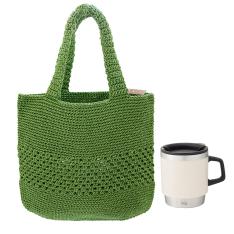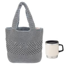【サーモマグ】ステンレスとプラスチックの二層構造により、飲み物の温度を長時間キープします。飲みたいときには、手軽にスライドさせて飲める回転式開閉蓋を装備。【トートバッグ】日常で使えるシーンは多く、お買い物用バッグや普段持ち歩くバッグなどとしてもマルチに使えるトートバッグ。丈夫なポリプロピレンの糸を使って手編みしました。A4サイズのものも収納できるゆとりのある大きさ。洗濯ネットに入れて洗濯機で丸洗いOK。