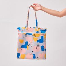 フィンランドをイメージした柄にムーミンたちがプリントされたバッグです。アウトドアサウナでも活躍してくれます。コスメやソープを入れられるポーチがセットになっており、別々でも普段使いしやすいデザインです。