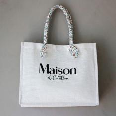 ジュート麻の素材のバッグです。肩からもかけられて、持ち手も布巻で柔らかです。持ち手とバッグの色はフランスならではのキュートな組み合わせです。夏はもちろん、一年中カジュアルスタイルに大活躍です。内側は、ビニールコーティングされていますので、汚れたらふき取りも簡単です。