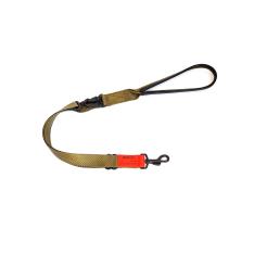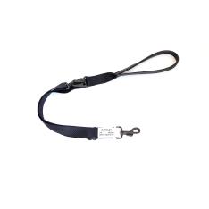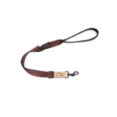 使用している素材は首輪と一緒の強度があるナイロン素材を柔らかく織り込んだテープです。車通りが多い都会でも飼い主と近い距離でとれるショートリードの長さ70cmと公園などで伸び伸びと遊べる様120cmの長さのリードです。持ち手下のレバーカンを外すことで長さ調整ができます。持ち手は握り易く手触りが良くなるよう革を巻いて縫い付けました。