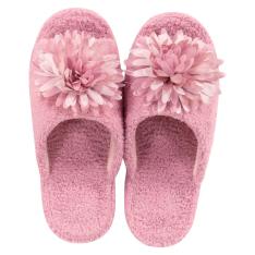 お花モチーフは光沢を抑えたサテン生地を使用。本体表の綿ベロア生地がふんわりと柔らかい印象を与えてくれます。中板の生地は、花柄を転写で表現し、スリッパがより華やかな印象です。中板内部には低反発ウレタン素材を使用することで足裏への負担を和らげ、履き心地が快適です。