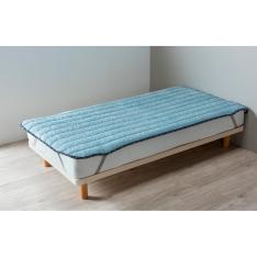 <kinofu>麻肌掛ふとんは、近江地方の豊かな水に育まれた「近江ちぢみ」を使用した麻ふとんです。絣染め、しごき捺染、ほぐし柔軟加工、竿干し縮み加工などによって、素材を生かした自然で優しい風合いに仕上げました。