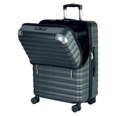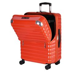 ブレーキ車輪搭載のフロントオープンタイプ。ワンタッチのカンタン操作で後輪が固定できるブレーキ機能を搭載、揺れる電車内も傾斜のある場所でも活躍します。車輪は静音性のある日乃本社製Lisof(ライソフ)を使用。フロントオープンは全面のファスナーが大きく開くため、スムーズな荷物の出し入れが可能。内部は小物が入るポケット付仕切りとゴムバンド付で荷崩れを軽減します。身長に合わせてハンドル高さは4段階調整可能