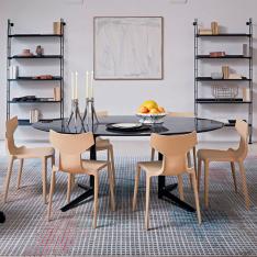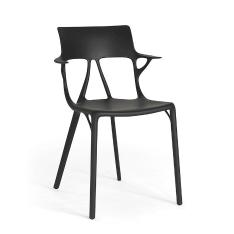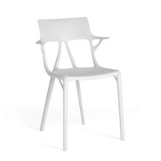今や押しも押されぬ存在となったデザイナー「フィリップ・スタルク」。彼がこれまでにデザインした椅子のデータをA.I.が学習し、導き出した最適解がこのチェア「A.I.(エーアイ)」です。快適な座り心地や、強度、そして材料の使用を最小限に抑え、スムーズな製作工程さえも考慮されています。長時間でも座っていたくなるようなソフトな肌触り。座ったときに自然な位置にくるひじ掛けは、長さ、高さ、丸みまでが絶妙なデザインで、腕への圧力を分散します。背もたれは、人体のS字カーブに沿って、楽な姿勢を保ちます。背中を広い面で支え、腰回りはクッションを置けるように空間をつくりました。座面と背もたれのマッチングで、快適な座り心地を実現。荷重を支える脚やフレーム部分は、最小限のボリュームに抑えられています。まるで生き物の骨格を思わせるこのデザインこそ最も無駄が無い、と主張しているよう。素材には100%リサイクルのポリプロピレンが使われており、未来を見据え、環境性を考えたプロダクトです。