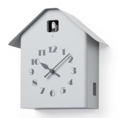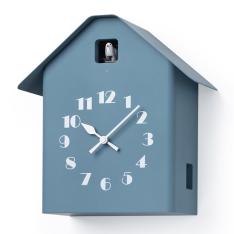 屋根部分は薄い金属板でできており、軽さを出すとともに上面の四角い窓に沿った形状がモダンな印象を与えます。本体中央に配された数字はカッコーの演出に相応しい、ブロードウェイと呼ばれるフォントをベースにしながら、輪郭を本体にフィットするよう再構築したものです。グレーはインテリアに馴染み、ブルーは空間に落ち着きを与えます。ベーシックな構成を持ちながらディテールが工夫されており、それがカッコー時計の魅力を引き出すことに繋がっています。※本製品は、大変重量がある時計です。壁に取り付ける際に掛け方が不適切な場合、時計が落下する恐れがあります。ご使用になる前に、必ず付属の取扱説明書の「時計の掛け方」をよくお読みになり、壁の材質・構造と時計の重量に適した方法で取付けてください。