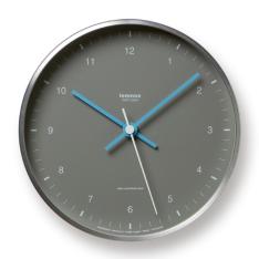 磨き上げられた鋳造アルミニウム枠体は軽快ながら確かな存在感を放ち、高品質で立体感ある指標印刷はDIDONI書体のメリハリある小気味よいリズムを際立たせます。置時計としてもお使いいただける専用スタンドが付属しています。