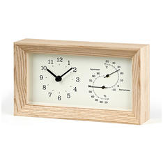 木から四角い塊を切り出してきたような、存在感のある温湿度計です。無垢材を贅沢に使用した時計枠は、植物系のオイル塗装により肌触り良く仕上げられており、木のぬくもりを直に感じていただくことができます。温湿度計の視認性も考慮し、はっきりとした見やすいデザインです。(LC11-06 NT)