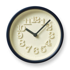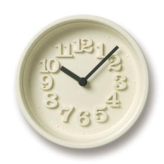 ガバ鋳込みと呼ばれる製造方法の特徴をいかした、磁器の時計です。すり鉢状に緩やかにくぼんだ中央面の外側には、レリーフのように指標が滑らかに浮き出ています。外形のフレーム部分は柔らかな丸みを帯びており、壁に優美な影を落とし、時計を手に持った際には心地よい手触りを生み出します。そして、そこには時計を象徴する12本の繊細なラインテクスチャーが施されており、素材の質感を高めています。細くのびやかな形状の針は、繊細な本体に馴染みます。本体の色調には、素材本来の色味と質感をいかしたホワイトと、本体形状に相応しいマットで上質なブルーとベージュの3種類を用意しました。セラミックジャパンの持つ焼き物の技術により誕生した空間の質を高める陰影の美しい時計です。