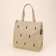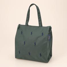 シグネチャーのポロポニーが目を引くデザインのバッグ。再生ポリエステル繊維を使用しており、折りたたむと付属のポーチに収納できコンパクトなサイズ感になります。