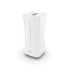 約60℃のミストを超音波振動によって噴出させる「超音波式+ヒーター式」のハイブリッド式加湿器。床上約140cmの高さまでミストが舞うパワフルさと暖かいミストでお部屋を潤します。また付属のリモコンに湿度センサーを搭載。リモコンがある場所の湿度を感知し、広範囲の加湿が可能です。
