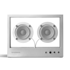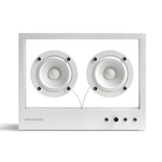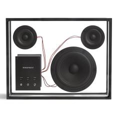 各オーディオパーツも含め細部に至るまで繊細にデザインされたスピーカー。ガラスの透明感で主張は少ないものの、存在感のあるデザインはどんな空間にも溶け込みます。最新技術により新しい機能が開発された場合、モジュールを交換もしくは追加するだけで新機能を利用することができ、資源の無駄を最小限に抑えることができます。ニュートラルなチューニングによって、録音に忠実な再現性を意味する「透明な音」を再生することを目指し、高音と低音のコントロールノブによってお好みの音質に調整することも可能。Bluetoothのペアリングや付属の3.5mmオーディオケーブルに繋いで有線での音楽再生もできます。