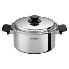 全面5層構造。ステンレスとアルミを重ねることで「熱しやすく冷めにくい」理想的な熱効率を実現。小さな火力でも均一に熱を伝えることができるため、短時間で味がしみこみます。その優れた熱効率によって小さな火力でも均一に熱を伝えることができるので、短時間でおいしく料理が仕上がり、エネルギーの節約にもつながります。シンプルな味付けで「おいしい」と「ヘルシー」を両立できるのはビタクラフトならではの魅力。密閉度が高く無水調理に最適で素材の栄養をまるごと摂れ、余分な油は使わない無油調理で、野菜は甘く色鮮やかに、お肉はやわらかくジューシーに仕上がります。煮物・蒸し物・揚げ物・焼き物はもちろん、炊飯やケーキ作りにも使え、一台でミニマルに活躍します。今も昔も変わらないスタンダードな外観は使い勝手の良さを追求した結果。毎日の調理道具として完成されたデザインです。