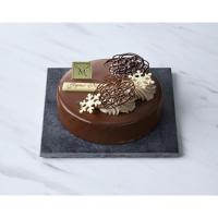 ガトーショコラ、ビターチョコレートのムース、チェリー、ホワイトチョコレートとバニラのムース、グラサージュショコラで仕上げたケーキです。