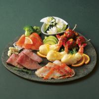 人気の大海老マヨやローストビーフ、金目鯛サラダ、サーモントラウトとオニオンマリネなど盛り込んだ色鮮やかなオードブルです。
