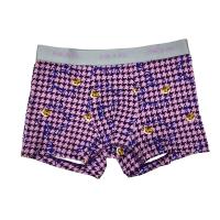 千鳥格子柄とヌネット柄を組み合わせたクラシカルな柄のボクサーパンツ。スタイルのフロントは丸みのある立体的なパターンで圧迫感を軽減した前閉じボクサーパンツ。素材はソフトな肌触りとフィット性のある綿ベア天竺素材を採用。ウエストゴムは肌触りの良い裏パイル仕様。