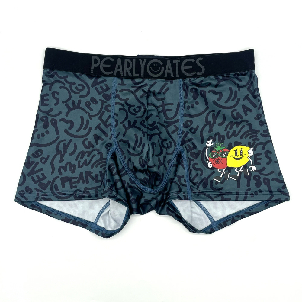 ロゴやモチーフをシンプルで力強いラインでキャッチーに表現し、新キャラクターの「ベジタブルズ」がアクセントになったパーリーゲイツらしいボクサーパンツ。前立て部分は立体感があり穿きやすいレギュラー丈ボクサー。素材は吸水速乾性のあるポリエステルベア天竺素材を採用し蒸れにくくサラッと快適。肌に当たる前マチ裏は肌に優しい綿ベア素材を採用。