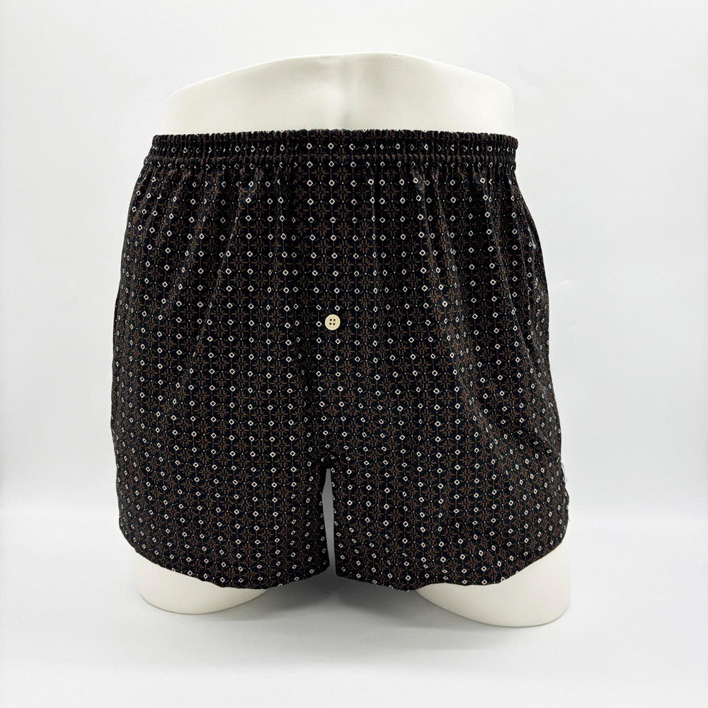 シンプルな花格子柄をプリントしたブロード。表面に光沢感があり肌触りもなめらか。ウエストは締め付け感が無い2本ゴム仕様でゆったりとした履き心地です。足口にはスリットを入れ余計な突っ張り感を軽減。