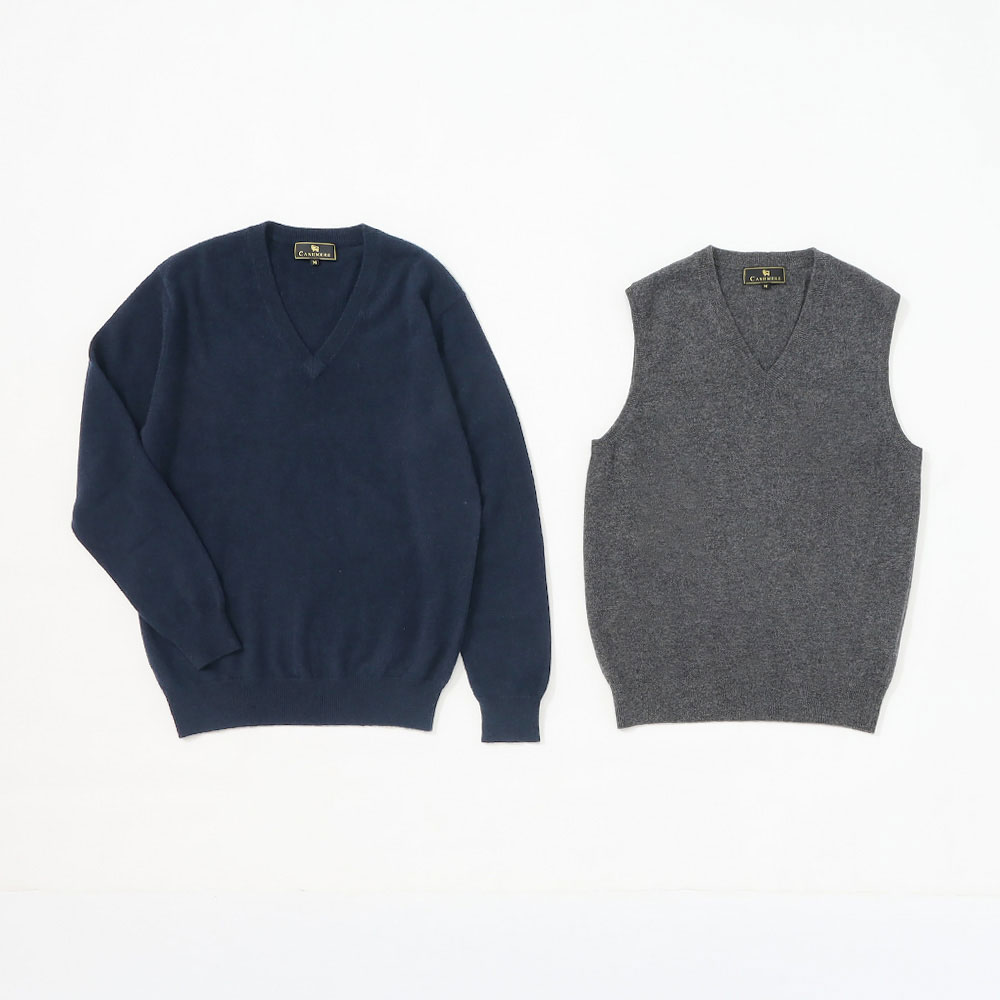 福袋 カシミヤ100% 紳士Vネックセーター&ベスト M→L