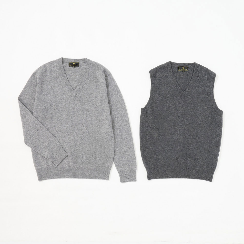福袋 カシミヤ100% 紳士Vネックセーター&ベスト M→L