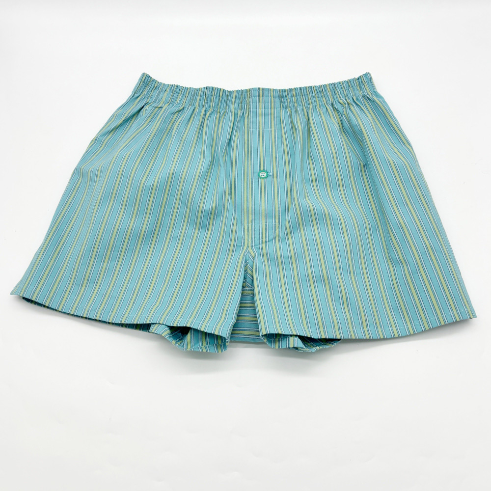 伸縮性のあるストレッチ素材の爽やかなストライプ柄トランクス。横に伸びる事でいやなツッパリ感を軽減します。無駄のないスマートなサイズ感足口スリット入り。ウエストはソフトなパイル裏打ちゴム使用。