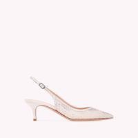 55mmのスティレットヒールを備えたエレガントなポインテッドトウタイプのRegina。上質なシースルーのオーガンザシルクを使用し、スエードのトリムで仕上げたこのパンプスには、まばゆいクリスタルがあしらわれています。