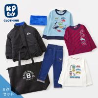 <セット内容>オーバーサイズ中わたジャケット、恐竜トレーナー、車ボーダーTシャツ、でんしゃTシャツ、デニム風ニットツイル10分丈パンツ、ネックウォーマー 計6点