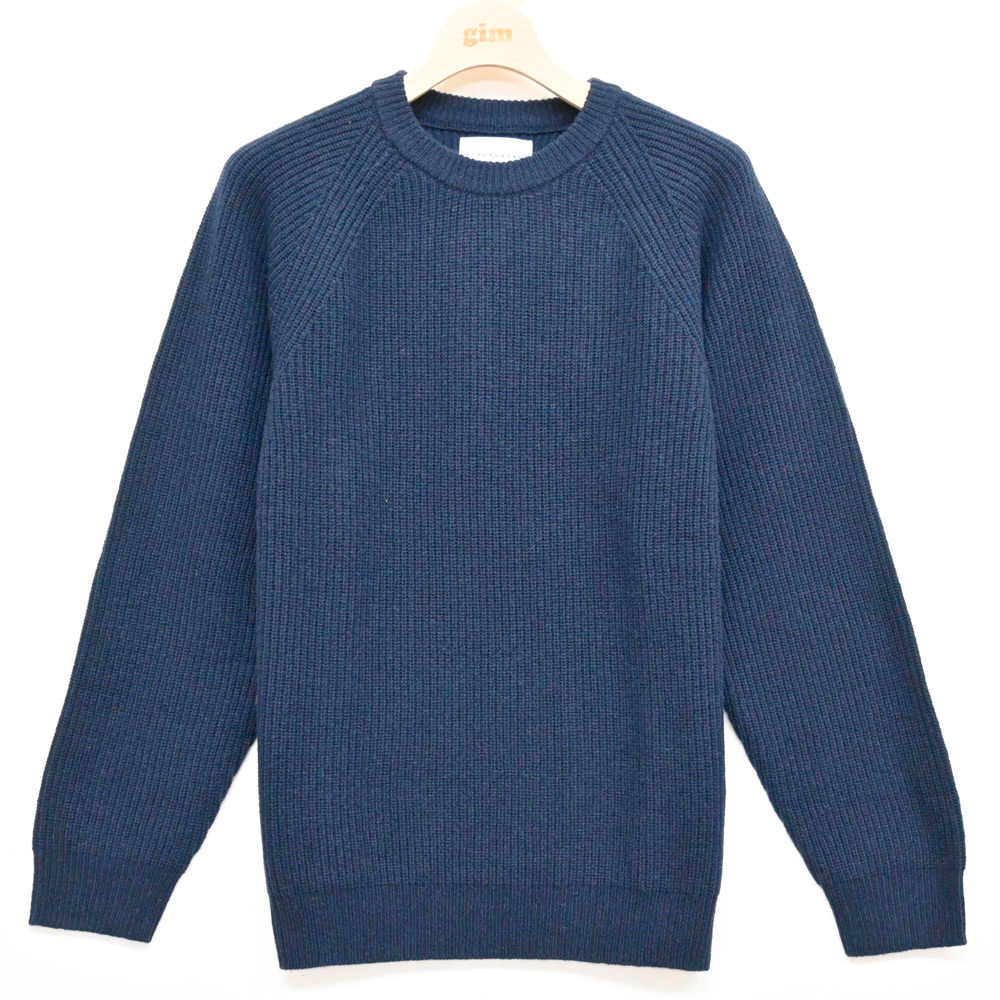 ウール70%ナイロン30%で混紡された素材を使用した畦編みのクルーネックセーター。ウールの特性として防汚性と防水性そしてメンテナンス性に優れておりますが摩擦には弱い性質があります。ナイロンを混紡することで耐久性と軽さも同時に備えることができました。それぞれの素材の特性をいかしたアイテムです。